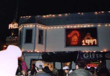 11:30pm - As the only person sober enough to drive, I'm elected to drive a mini-van full of passengers to the "Countdown To Groundhog Day" at Scotty's Donuts. Several hundred people fill the parking lot awaiting the arrival of midnight. A Times Square-style countdown is held to usher in the big day.