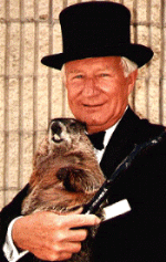 The groundhog, apparently spooked by a predawn fireworks display, managed to conceal himself in his burrow, almost out of the reach of his human interpreters. "My heart just stopped. I opened the door and there was no groundhog. He had burrowed down two feet below his perch," said Official Handler Bill Deeley.