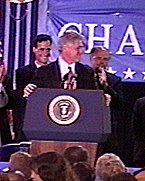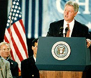 "Bond, You Say?"These newly proposed Treasury bonds, to be issued in denominations as low as $1,000, are to go on sale next year, being linked to the consumer price index. The bonds, which would adjust accordingly to the inflation rate, were heralded by Clinton as a foundation in "which people can build their savings and their dreams."Getting Back On TrackClinton's talk went on to address remarks made by the Republican front-runner, recalling that Dole's party has tried to dispute America as a whole "[being] on the right track": the economy is not growing as fast as it should and is forcing too many workers into insecure, low-wage jobs. Clinton countered that contention by arguing that statistics have shown that a majority of newly created jobs pay higher-than-average wages. After concluding his speech, Clinton gave his usual toothy grin to cameras, and took off to Philadelphia, by way of airplane.Visit the OnTV Bulletin Archive. |