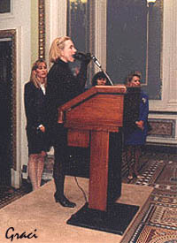WASHINGTON (May 6) - Hillary Rodham Clinton said on Wednesday she supported the eventual creation of a Palestinian state but the White House, in damage-control mode, was quick to say her comments did not reflect a change in U.S. Policy. "I think that the territory the Palestinians currently inhabit, and whatever additional territory they will obtain through the peace negotiations, should be considered and evolve into a functioning modern state... ...responsible for the well-being of its people and is seen on the same footing as any other state in terms of dealing responsibly with all of the issues that state governments must deal with." White House spokesman Mike McCurry reiterated that the United States has never endorsed Palestinian statehood. He also said the first lady was "responding in a human way" and was exercising her right to speak her mind as a free citizen. For the fashion conscious, Mrs. Clinton wears a size 7 mouth. |